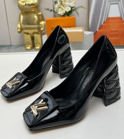 • [홍콩명품.LOUIS VUITTON] 루이비통 24SS 로고 여성 레더 가죽 힐 굽 구두 (블랙-유광), SE2918, SMS, 명품스니커즈,운동화,구두,로퍼,하이탑,신발