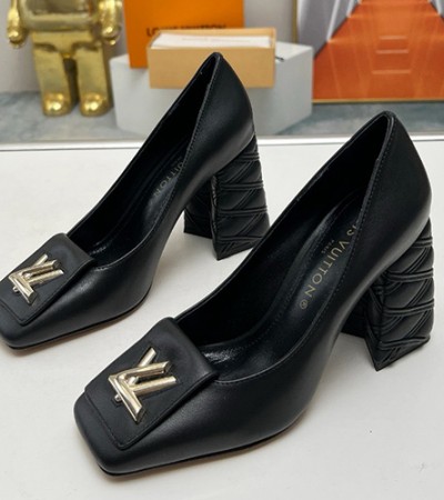 • [홍콩명품.LOUIS VUITTON] 루이비통 24SS 로고 여성 레더 가죽 힐 굽 구두 (블랙), SE2920, SMS, 명품스니커즈,운동화,구두,로퍼,하이탑,신발