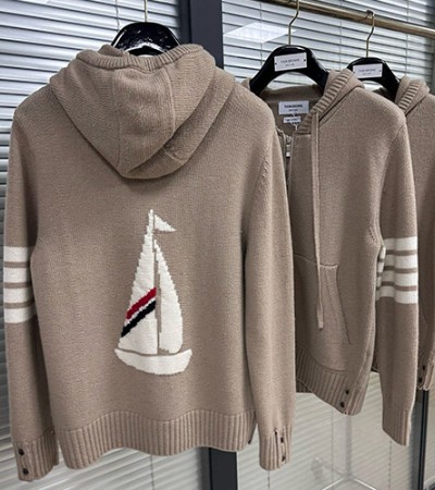 • [홍콩명품.THOME BROWNE] 톰브라운 24SS 로고 4바 후드 니트 가디건 자켓 (2컬러), BM13467, RED, 홍콩명품의류,구매대행,온라인명품