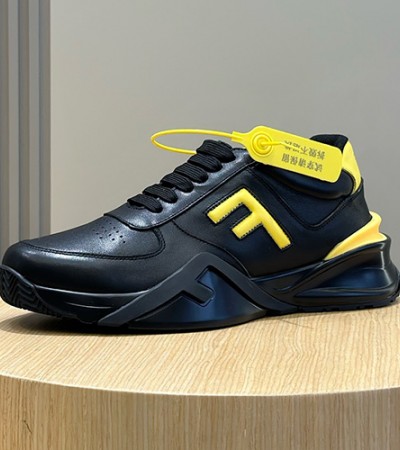 • [홍콩명품,FENDI] 펜디 24SS 로고 레더 가죽 스니커즈 운동화 (블랙-노랑), SE2936, S6, 명품스니커즈,운동화,구두,로퍼,하이탑,신발
