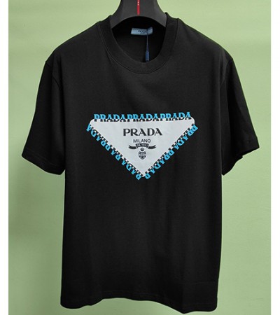 • [홍콩명품,PRADA] 프라다 24SS 삼각로고 프린트 반팔 티셔츠 (블랙), BM13661, JL, 홍콩명품의류,구 매대행,온라인명품