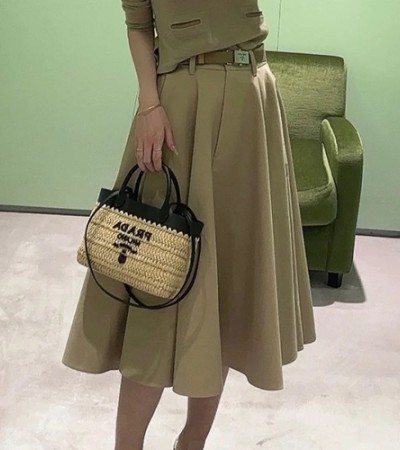 [홍콩명품,PRADA] 프라다 24SS 로고 여성 나일론 미디 스커트 (베이지), BM13682, S1F, 홍콩명품의류,구 매대행,온라인명품 > 여성몰