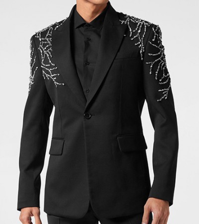 • [홍콩명품.PHILIPP PLEIN] 필립플레인 24SS 로고 스터드 장식 정장 수트 자켓 (블랙), BM13725, SAM, 홍콩명품의류,구 매대행,온라인명품