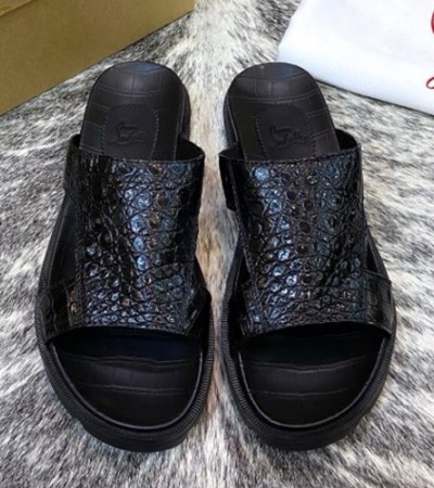 • [홍콩명품.Christian Louboutin] 크리스챤루부탱 24SS 로고 레더 악어가죽 슬리퍼 (블랙), SE3055, S1, 명품스니커즈,운동화,구두,로퍼,하이탑,신발