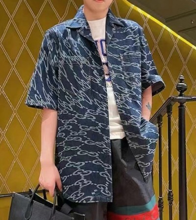 [홍콩명품.Gucci] 구찌 24SS 로고 패턴 데님 반팔 남방 셔츠 (네이비), BM13816, JU, 홍콩명품의류,구 매대행,온라인명품 요약정보 및 구매