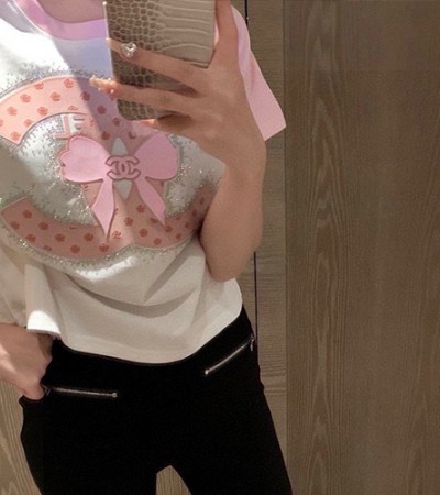 [홍콩명품.CHANEL] 샤넬 24SS 로고 스터드 장식 여성 반팔 티셔츠 (2컬러), BM13890, SG, 홍콩명품의류,구 매대행,온라인명품 요약정보 및 구매