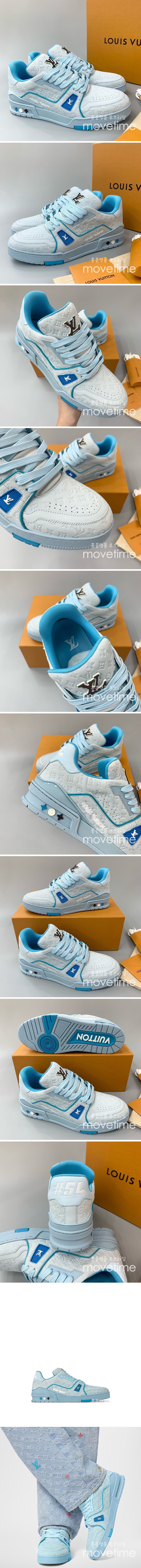 • [홍콩명품.LOUIS VUITTON] 루이비통 24SS 로고 모노그램 트레이너 스니커즈 운동화 (스카이블루), SE3078, PMD, 명품스니커즈,운동화,구두,로퍼,하이탑,신발