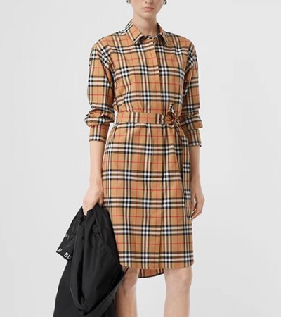• [홍콩명품.Burberry] 버버리 24SS 로고 여성 빈티지 체크 패턴 벨티드 셔츠 원피스, BM13984, S1F, 홍콩명품의류,구 매대행,온라인명품