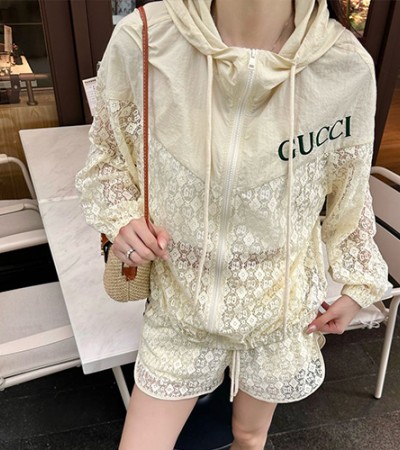 [홍콩명품.Gucci] 구찌 24SS 로고 여성 시스루 후드 자켓 + 미니 쇼츠 반바지 상하의 세트 (베이지), BM14142, TBG, 홍콩명품의류,구 매대행,온라인명품 요약정보 및 구매