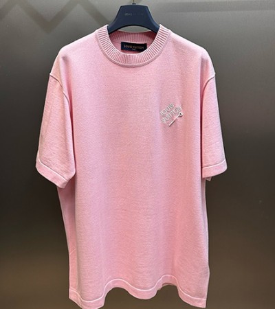 • [홍콩명품.LOUIS VUITTON] 루이비통 24SS 로고 자수 니트 반팔 티셔츠 (핑크), BM14194, JU, 홍콩명품의류,구매대행,온라인명품