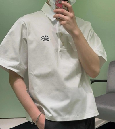 [홍콩명품,PRADA] 프라다 24SS 로고 자수 카라 폴로 반팔 티셔츠 (화이트), BM14207, JU, 홍콩명품의류,구매대행,온라인명품 > 남자의류