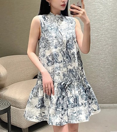 • [홍콩명품,Christian Dior] 디올 24SS 로고 패턴 여성 슬리브리스 원피스 (화이트), BM14243, TBG, 홍콩명품의류,구매대행,온라인명품