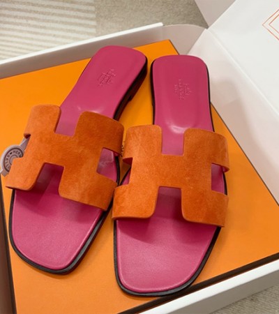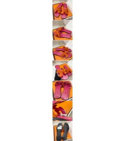 [홍콩명품.Hermes] 에르메스 24SS 로고 여성 산토리니 레더 가죽 샌들 슬리퍼 (오렌지), SE3168, H3, 명품스니커즈,운동화,구두,로퍼,하이탑,신발 > 여성몰