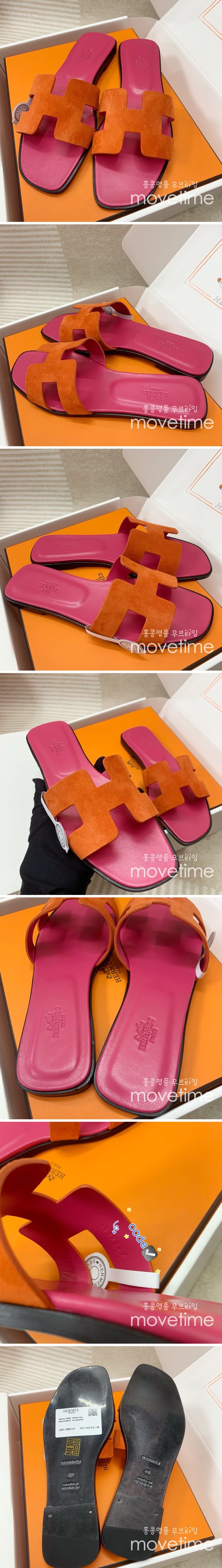 [홍콩명품.Hermes] 에르메스 24SS 로고 여성 산토리니 레더 가죽 샌들 슬리퍼 (오렌지), SE3168, H3, 명품스니커즈,운동화,구두,로퍼,하이탑,신발 요약정보 및 구매