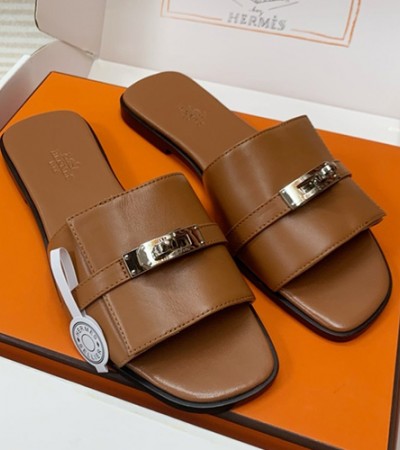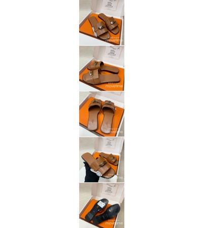 [홍콩명품.Hermes] 에르메스 24SS 로고 여성 KELLY 레더 가죽 샌들 슬리퍼 (브라운), SE3169, H3, 명품스니커즈,운동화,구두,로퍼,하이탑,신발 > 여성몰