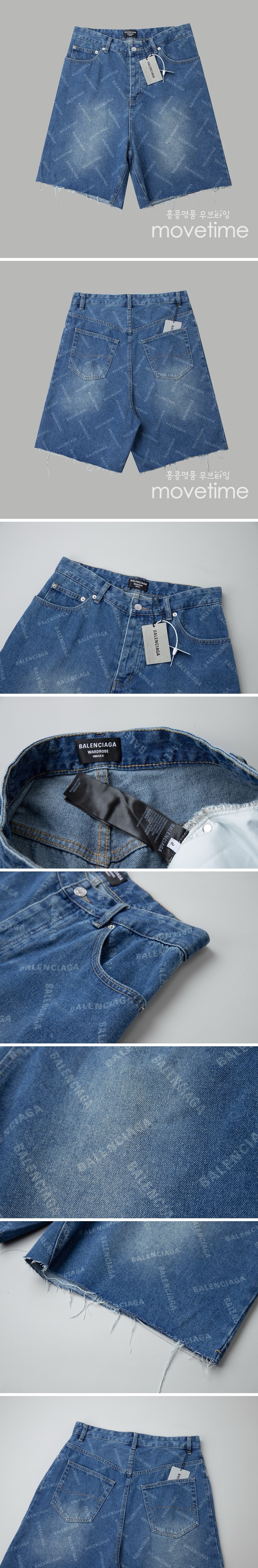 • [홍콩명품.BALENCIAGA] 발렌시아가 24SS 로고 패턴 데님 쇼츠 반바지, BM14265, JU, 홍콩명품의류,구매대행,온라인명품