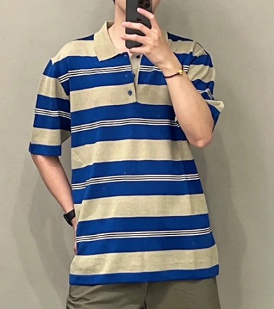 [홍콩명품.LOEWE] 로에베 24SS 로고 자수 스트라이프 폴로 반팔 티셔츠 (블루), BM14292, TOP, 홍콩명품의류,구매대행,온라인명품 > 남자의류