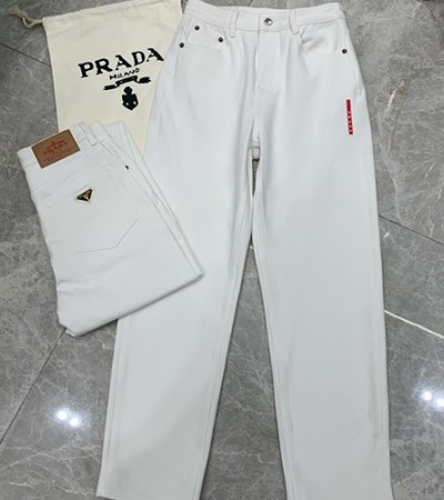 • [홍콩명품,PRADA] 프라다 24SS 삼각로고 여성 데님 팬츠 진 청바지 (화이트), BM14309, TBG, 홍콩명품의류,구매대행,온라인명품