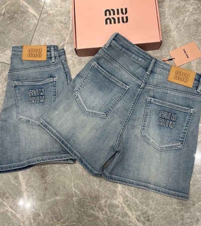 • [홍콩명품,MIU MIU] 미우미우 24SS 로고 여성 데님 미니 쇼츠 반바지, BM14311, TBG, 홍콩명품의류,구매대행,온라인명품