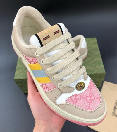 • [홍콩명품.Gucci] 구찌 24SS 로고 여성 GG 스크리너 스니커즈 운동화 (핑크-베이지), SE3216, PMD, 명품스니커즈,운동화,구두,로퍼,하이탑,신발
