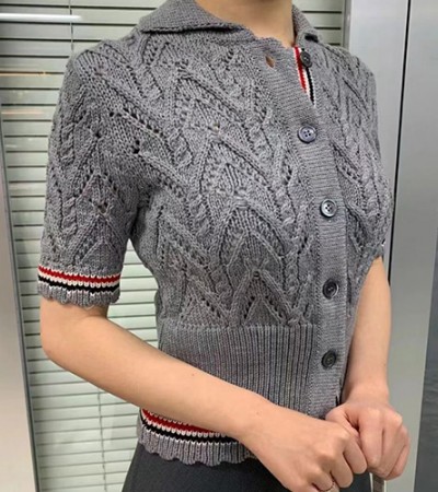 [홍콩명품.THOME BROWNE] 톰브라운 24SS 로고 여성 3선 니트 반팔 가디건 (2컬러), BM14348, TB1, 홍콩명품의류,구매대행,온라인명품 > 여성몰