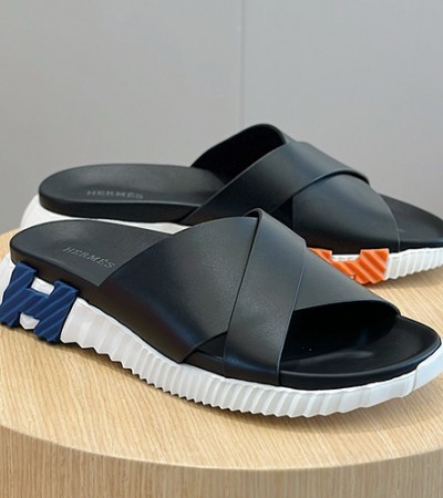• [홍콩명품.Hermes] 에르메스 23SS 로고 레더 가죽 샌들 슬리퍼 (블랙), SE3242, S2, 명품스니커즈,운동화,구두,로퍼,하이탑,신발