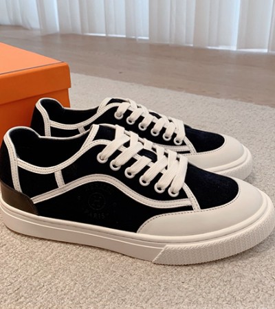 • [홍콩명품.Hermes] 에르메스 23SS 로고 레더 가죽 레이어드 스니커즈 운동화 (블랙-화이트), SE3259, S3, 명품스니커즈,운동화,구두,로퍼,하이탑,신발