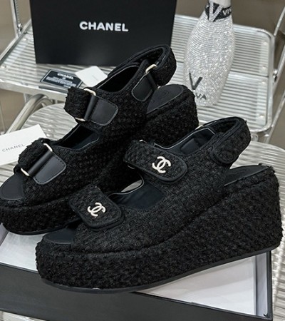 • [홍콩명품.CHANEL] 샤넬 24SS 로고 여성 7.5cm굽 샌들 (블랙), SE3340, SMS, 명품스니커즈,운동화,구두,로퍼,하이탑,신발
