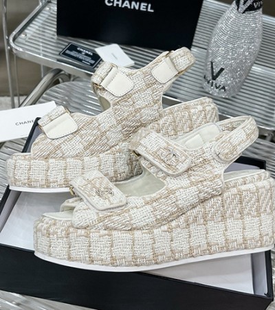 • [홍콩명품.CHANEL] 샤넬 24SS 로고 여성 7.5cm굽 샌들 (베이지), SE3341, SMS, 명품스니커즈,운동화,구두,로퍼,하이탑,신발