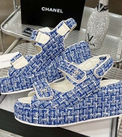 • [홍콩명품.CHANEL] 샤넬 24SS 로고 여성 7.5cm굽 샌들 (블루), SE3343, SMS, 명품스니커즈,운동화,구두,로퍼,하이탑,신발