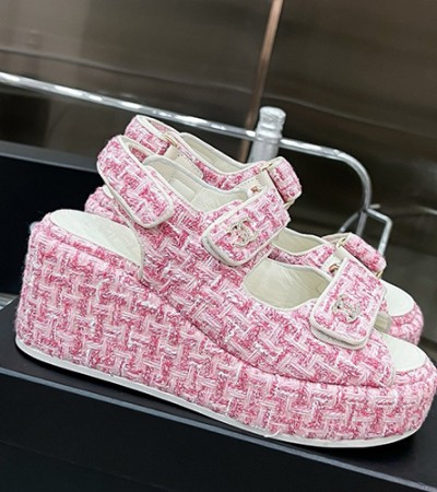 • [홍콩명품.CHANEL] 샤넬 24SS 로고 여성 7.5cm굽 샌들 (핑크), SE3344, SMS, 명품스니커즈,운동화,구두,로퍼,하이탑,신발