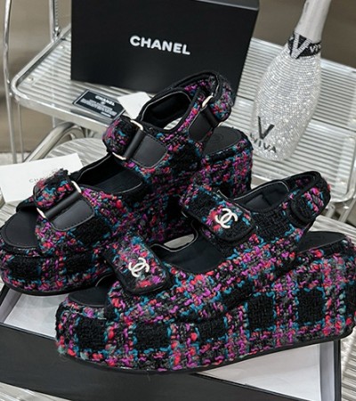 • [홍콩명품.CHANEL] 샤넬 24SS 로고 여성 7.5cm굽 샌들 (퍼플패턴), SE3347, SMS, 명품스니커즈,운동화,구두,로퍼,하이탑,신발