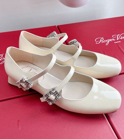 • [홍콩명품,Roger Vivier] 로저비비에 24SS 로고 여성 레더 가죽 3cm굽 플랜 슈즈 (아이보리), SE3352, SMS, 명품스니커즈,운동화,구두,로퍼,하이탑,신발
