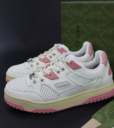 • [홍콩명품.Gucci] 구찌 24SS 로고 여성 레더 가죽 스니커즈 운동화 (화이트-핑크), SE3417, PMD, 명품스니커즈,운동화,구두,로퍼,하이탑,신발
