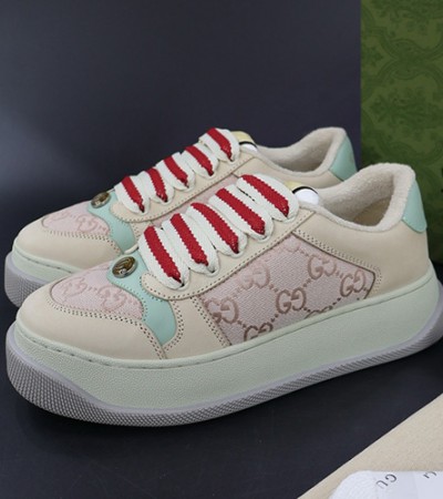 • [홍콩명품.Gucci] 구찌 24SS 로고 여성 스크리너 레더 가죽 스니커즈 운동화 (핑크), SE3418, PMD, 명품스니커즈,운동화,구두,로퍼,하이탑,신발