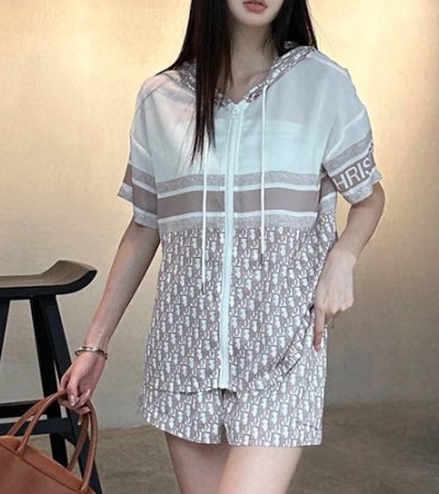 • [홍콩명품,Christian Dior] 디올 24SS 로고 오블리크 여성 후드 반팔 스킨 자켓 + 미니 쇼츠 반바지 상하의 세트 (2컬러), BM14573, S1F, 홍콩명품의류,구매대행,온라인명품