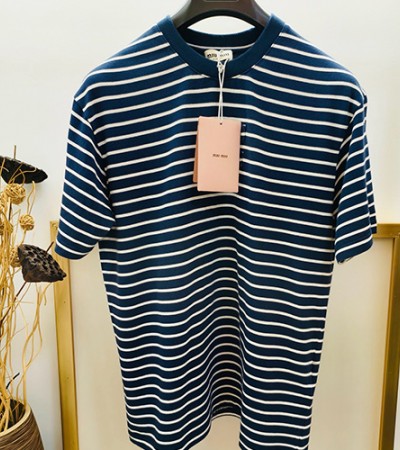 [홍콩명품,MIU MIU] 미우미우 24SS 로고 스트라이프 반팔 티셔츠 (2컬러), BM14601, YS, 홍콩명품의류,구매대행,온라인명품 요약정보 및 구매