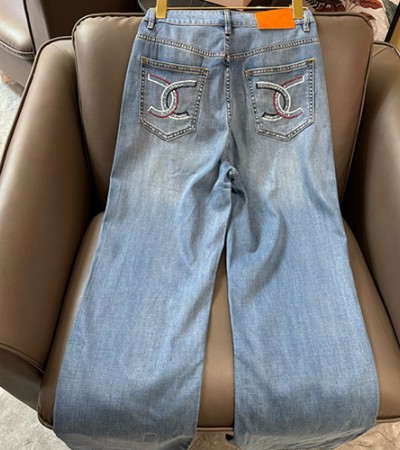 • [홍콩명품.CHANEL] 샤넬 24SS 로고 여성 오버핏 데님 팬츠 진 청바지, BM14632, BR, 홍콩명품의류,구매대행,온라인명품
