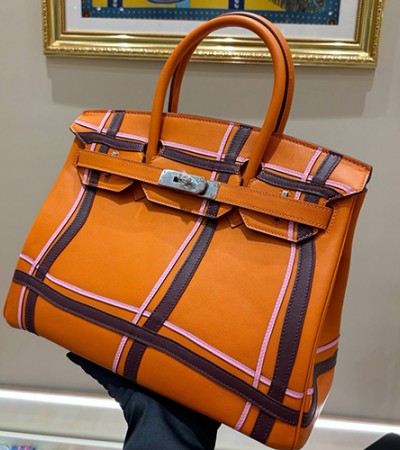 • [홍콩명품.Hermes] 에르메스 24SS 로고 패턴 BIRKIN SWIFT 핸드백 토트백 (오렌지-은장), BGM3248, H3, 홍콩명품가방,명품쇼핑몰,크로스백,핸드백,구매대행,무브타임