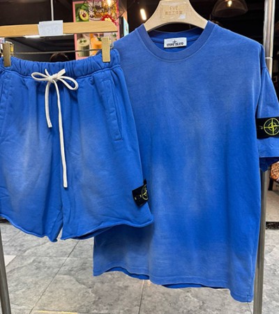 [홍콩명품.Stone Island] 스톤아일랜드 24SS 로고 탈부착 워싱 반팔 티셔츠 + 쇼츠 반바지 상하의 세트 (7컬러), BM14705, ST1, 홍콩명품의류,구매대행,온라인명품 요약정보 및 구매