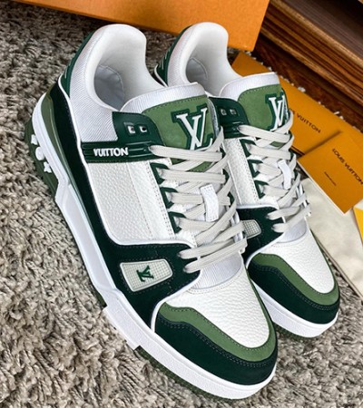 • [홍콩명품.LOUIS VUITTON] 루이비통 24SS 로고 모노그램 트레이너 스니커즈 운동화 (화이트-그린), SE3617, S1, 명품스니커즈,운동화,구두,로퍼,하이탑,신발