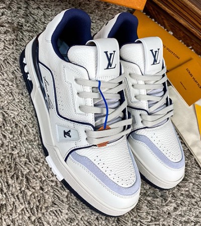 • [홍콩명품.LOUIS VUITTON] 루이비통 24SS 로고 모노그램 트레이너 스니커즈 운동화 (화이트-네이비), SE3618, S1, 명품스니커즈,운동화,구두,로퍼,하이탑,신발