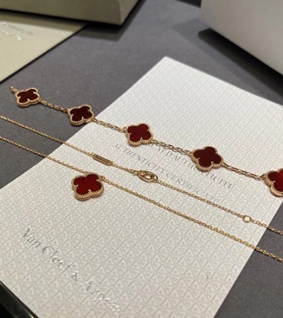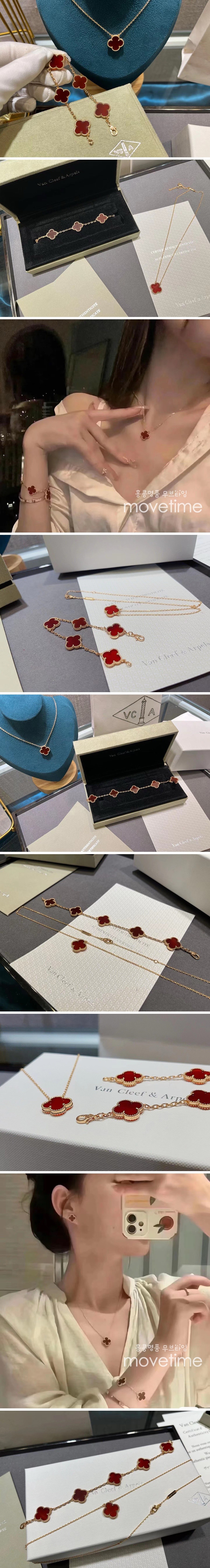 • [홍콩명품.VANCLEEF&ARPELS] 반클리프아펠 퓨어 알함브라 24SS 로고 펜던트 네크리스 목걸이 팔찌 세트 (골드-레드), ET2539, AGG, 홍콩명품쇼핑몰,인터넷명품,온라인명품사이트,남자명품,해외직구