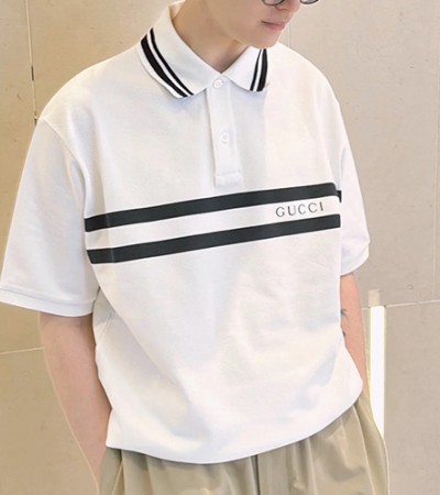 [홍콩명품.Gucci] 구찌 24SS 로고 스트라이프 폴로 반팔 티셔츠 (화이트), BM14776, JL, 홍콩명품의류,구매대행,온라인명품 요약정보 및 구매