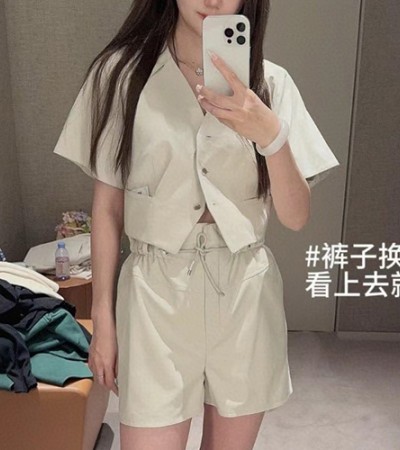 [홍콩명품.Hermes] 에르메스 24SS 로고 여성 반팔 쇼트 자켓 + 미니 쇼츠 반바지 상하의 세트 (베이지), BM14815, TBG, 홍콩명품의류,구매대행,온라인명품 요약정보 및 구매