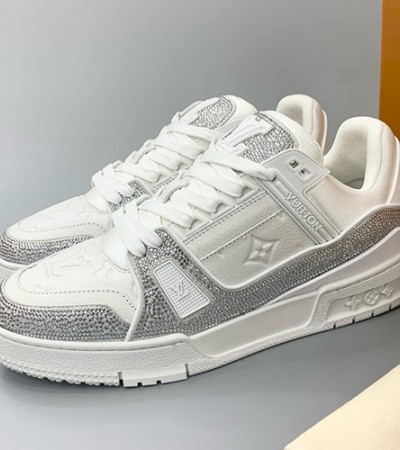 [홍콩명품.LOUIS VUITTON] 루이비통 24SS 로고 모노그램 스터드 장식 트레이너 스니커즈 운동화 (실버), SE3629, PMD, 명품스니커즈,운동화,구두,로퍼,하이탑,신발 > 신발