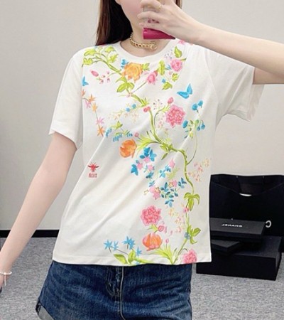 [홍콩명품,Christian Dior] 디올 24SS 로고 플라워 프린트 여성 반팔 티셔츠 (화이트), BM14895, TBG, 홍콩명품의류,구매대행,온라인명품 > 여성몰