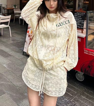 [홍콩명품.Gucci] 구찌 24SS 로고 여성 레이스 후드 자켓 + 미니 쇼츠 반바지 상하의 세트 (아이보리), BM14920, S1F, 홍콩명품의류,구매대행,온라인명품 > 여성몰