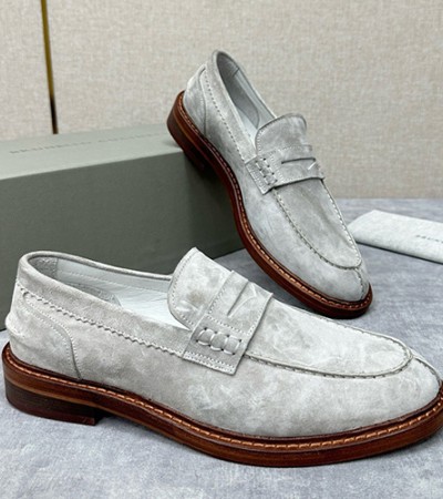 • [홍콩명품.Brunello Cucinelli ] 브루넬로쿠치넬리 24SS 로고 레더 가죽 구두 로퍼 (그레이), SE3695, S2, 명품스니커즈,운동화,구두,로퍼,하이탑,신발
