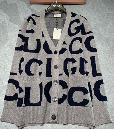 • [홍콩명품.Gucci] 구찌 24SS 로고 여성 V넥 니트 가디건 (그레이-프리사이즈), BM14922, SG, 홍콩명품의류,구매대행,온라인명품
